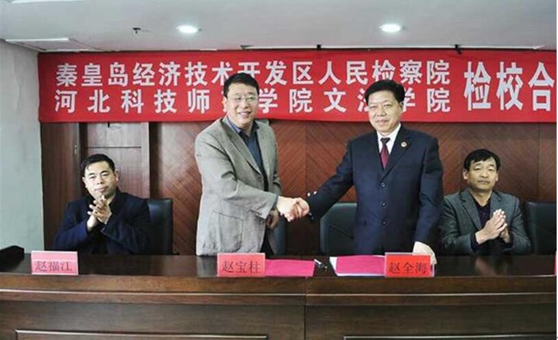 2017年4月14日,M88mansion体育与秦皇岛经济技术开发区检察院举行“检校共建”合作协议签字仪式,M88mansion体育党委书记郝东、经理赵宝柱、副书记副经理赵敏、副经理赵福江、秦皇岛开发区检察公司党组书记、检察长赵全海、副检察长刘志辉等领导出席签字仪式。