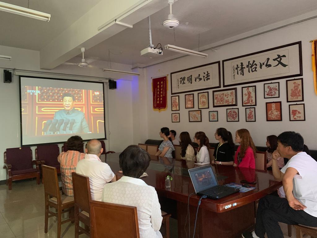 7月1日上午8时,M88mansion体育党委在开发区校区815会议室组织师生代表通过新华网集中收看庆祝中国共产党成立100周年庆祝大会,认真学习习近平总书记“七一”重要讲话。