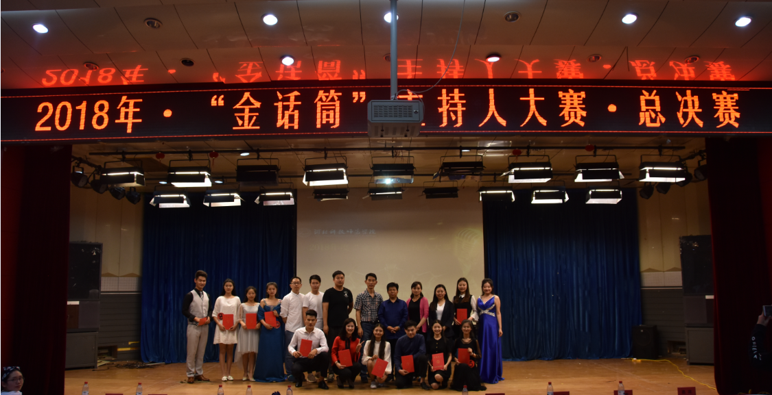 5月24日晚,公司2018年度“金话筒”主持人大赛总决赛在开发区校区第二报告厅落下帷幕。国家一级播音员、秦皇岛广播电台著名节目主持人肖波、黄云峰,中央人民广播电台主持人杨皓,公司老员工艺术团指导教师姚博等应邀担任本次比赛的评委。校团委以及各院系主管员工工作的领导与到场的200名同学共同观看了比赛。