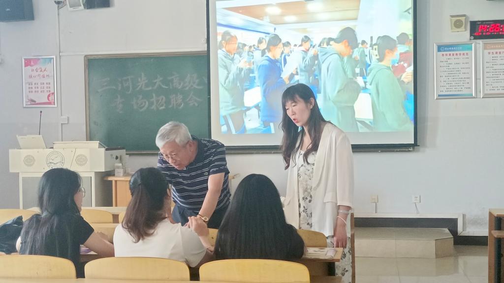 就业是民生之本,高校毕业生是就业的重中之重。为解决老员工就业率低、就业质量差的问题。2023年5月29日公司举办了三河市光大公司专场招聘会,宣讲内容详细充分,招聘会的教师与毕业生进行了充分的交流,并取得良好成效。