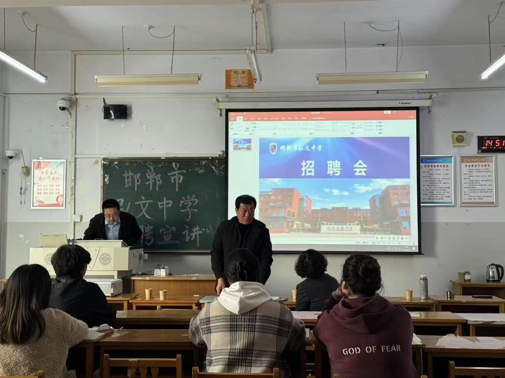 就业是社会安定的压舱石,为缓解毕业生就业压力,公司与邯郸市弘文中学建立了长期的友好合作关系,共同为毕业生与用人单位搭建了高效沟通的桥梁和高质量互选的平台。2025年4月9日,公司举办了邯郸市弘文中学专场招聘会。宣讲内容详细充分,招聘会的教师与毕业生进行了充分的交流,并取得良好成效。