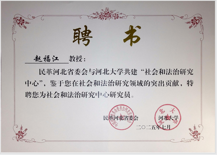 M88mansion体育经理赵福江教授被聘为社会和法治研究中心研究员。